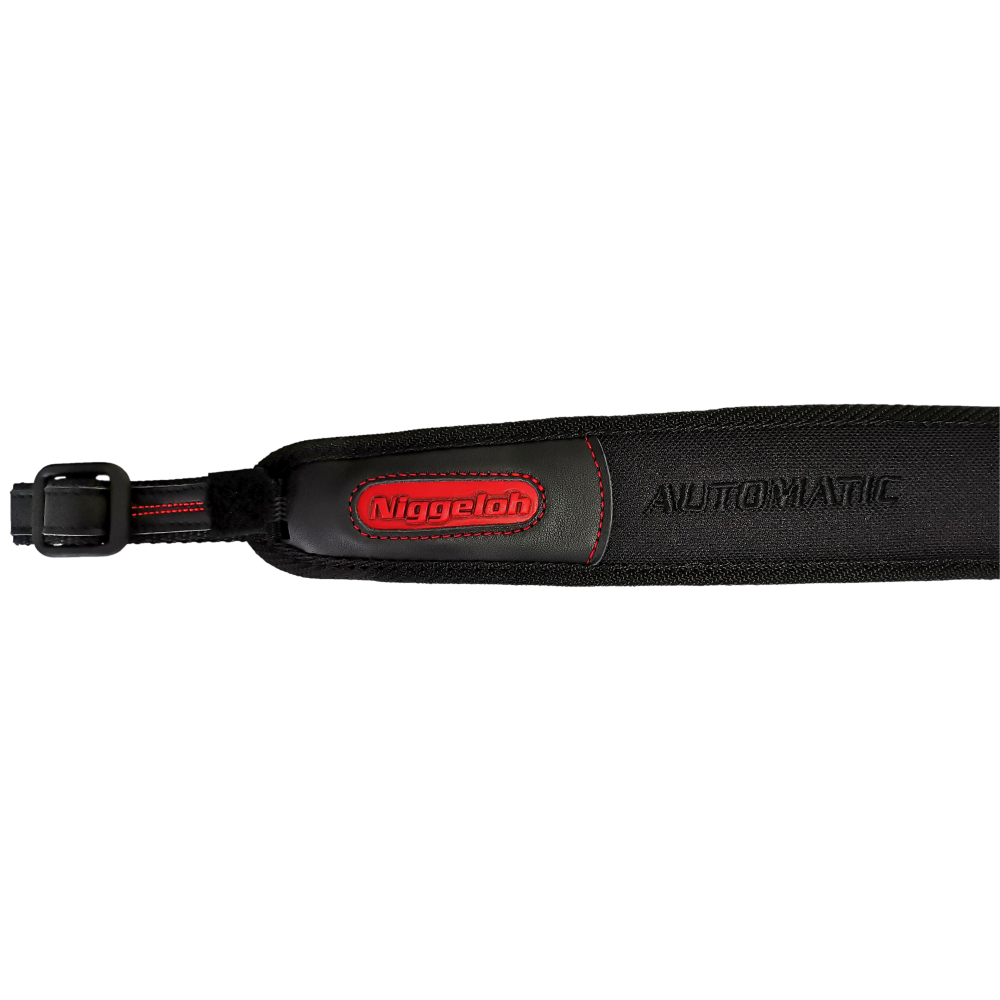 - automatický sťahovací Remeň na pušku čiernej farby s koženým lemom