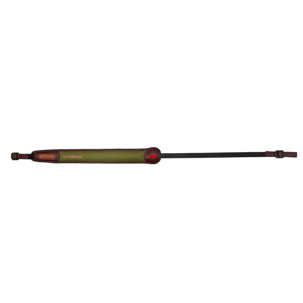 - automatický sťahovací Remeň na pušku olivovej farby s koženým lemom