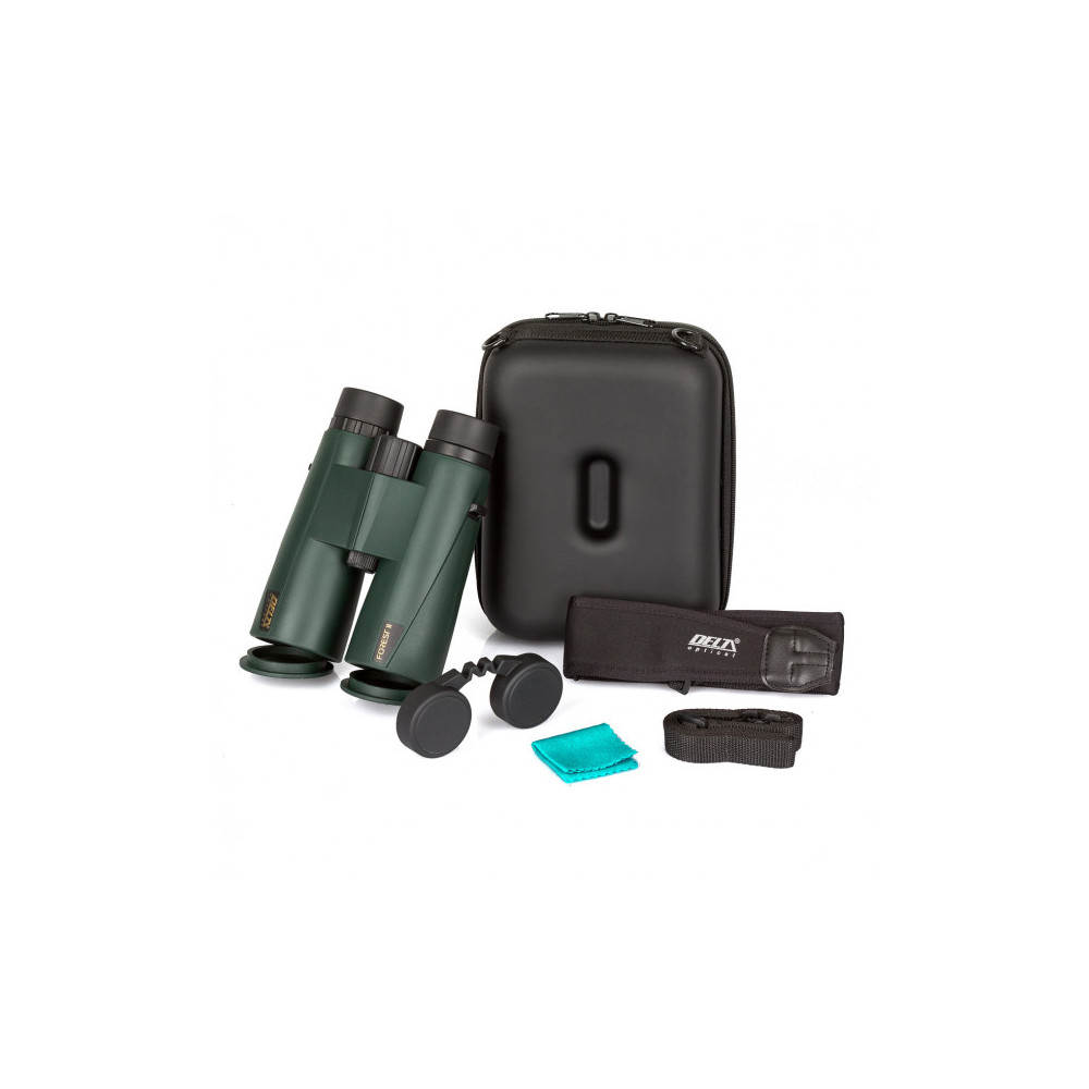 Ďalekohľad Delta Optical Forest II 8,5x50 je veľmi obľúbený ďalekohľad hlavne u poľovníkov a turistov. Má väčšie zväčšenie ako model 8x42 a je preto vhodnejší na pozorovanie vzdialených objektov. Napriek 8,5-násobnému zväčšeniu ponúka užívateľovi stále široké zorné pole až 5,6 stupňov, bez optických chýb ako je napríklad chromatická aberácia. Verné farby a jasný obraz ďalekohľadu sú vďaka hranolom z vysoko kvalitných sklenených a antireflexných náterov BaK4, ktoré pokrývajú všetky optické prvky ďalekohľadu. Plnenie dusíkom pôsobí proti zaroseniu optiky z vnútra. Navyše je to vodotesný ďalekohľad, takže ho môžete dokonca použiť aj v daždi. Pri prechádzkach alebo cestovaní s batohom je dôležitý každý gram batožiny, a preto je séria Forest II navrhnutá tak, aby optimálne kombinovala skvelé optické vlastnosti ďalekohľadu s malými rozmermi. V kombinácii s moderným vzhľadom bude séria Forest II určite rozpoznaná medzi všetkými pozorovateľmi, ktorí oceňujú pohodlie pri používaní.