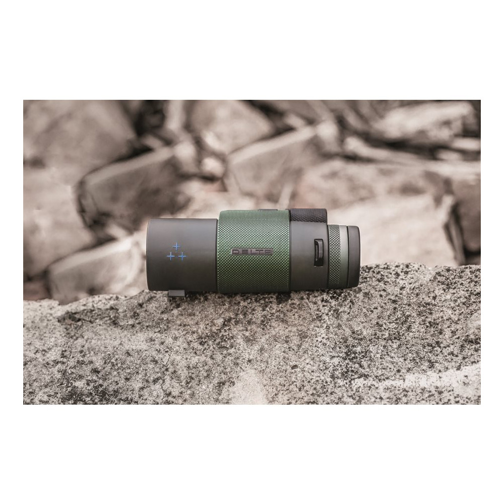 Ďalekohľad Delta-T 9x45 je skvelý poľovnícky ďalekohľad pre všetkých, ktorí očakávajú vysoký stupeň detailov pozorovaného obrazu. Vďaka použitiu skla HD a vhodných antireflexných vrstiev získal jas a ostrosť obrazu typické pre ďalekohľady 9x45 v oveľa vyššej rade. Ďalekohľady sú takmer bez chromatickej aberácie, majú pomerne veľké zorné pole s ostrosťou takmer na okraji obrazu. Napriek vysokému zväčšeniu je to pohodlný model, s hmotnosťou len 965 gramov. Kvalitné sklo a novo navrhnutý optický systém umožňujú, aby ďalekohľady Delta ponúkali obrazovú kvalitu, ktorá uspokojí aj najnáročnejších poľovníkov. Celá konštrukcia je vyhotovená s vnútorným zaostrovacím systémom. Telo je veľmi trvanlivé a samozrejme úplne vodotesné. Telo vyrobené z horčíkovej zliatiny robí že ďalekohľad je ľahký, kompaktný a dokonale vyvážený. Delta-T je vybavená diaľkomerom s laserovým meraním až na 2375 metrov. Indikácie diaľkomeru sú prezentované na OLED displeji s 5-stupňovou úpravou jasu. Ďalšie režimy merania: