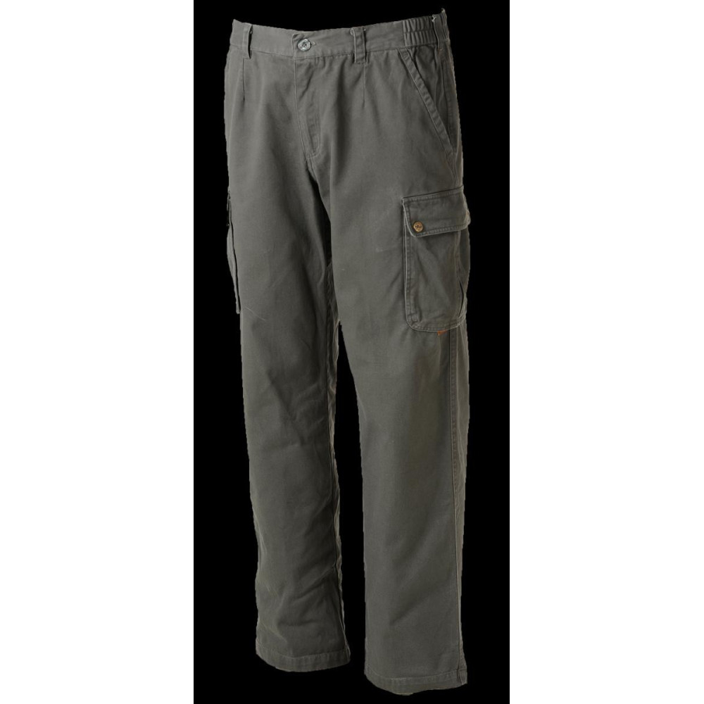 Olivovo zelená farba. Ľahké, pevné, bavlnené, vzdušné nohavice s vodeodolnou teflonovou úpravou. Použiteľné tak na poľovačku ako aj na bežné nosenie. Teflónová, povrchová úprava pre odpudzovanie vody a špiny.